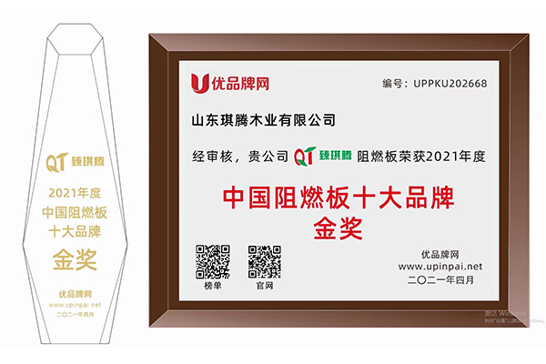 当前,板材行业正处转型升级、实现全新战略破局的重要关口,品牌战略已经达到前所未有的高度和强度。新形势面前,琪腾木业臻琪腾品牌凭借雄厚的品牌实力,用品牌加持高品质产品,经过全国用户的网络票选,在2020、2021年连续2届获得中国阻燃板十大品牌金奖。