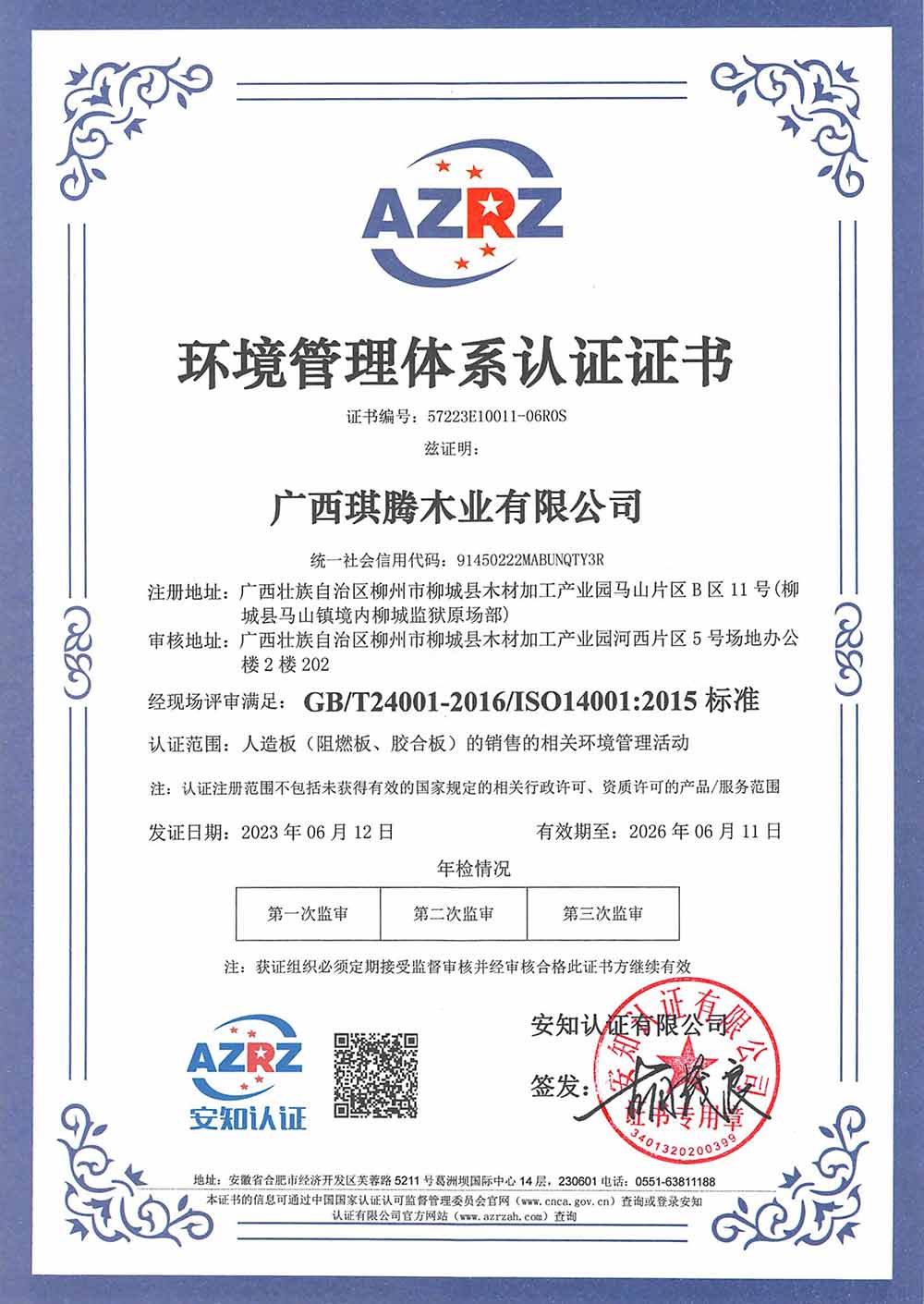 环境管理体系认证证书