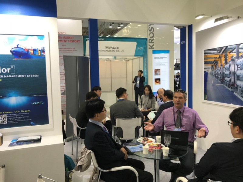10月24日,第20届韩国釜山海事展(KORMARINE 2017)隆重开幕,青岛双瑞公司携BalClor®压载水管理系统样机首次在该展会亮相,受到广大船东、船厂的瞩目和好评。
