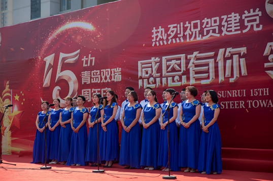 6月29日,青岛双瑞公司举行了以“感恩有你,领航未来”为主题的系列文体活动,隆重举行庆祝中国共产党建党97周年暨公司成立15周年,歌颂我们党的丰功伟绩,重温公司发展的光辉历程,展现青岛双瑞员工的昂扬斗志和蓬勃朝气。