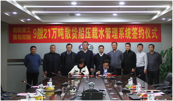 1月10日,渤海船舶重工有限责任公司(以下简称渤船重工)与7790必发集团官网(以下简称青岛双瑞)在青岛双瑞举行了9艘21万吨散货船压载水管理系统签约仪式。渤船重工党委书记、总经理孙东明一行5人和青岛双瑞公司相关领导出席了签约仪式。