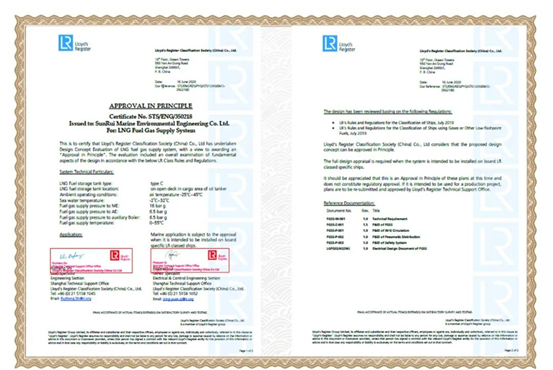 6月16日,青岛双瑞公司船用LNG供气系统(FGSS)获得英国劳氏船级社(LR)原理认可(AIP)证书,成为国内首家获此认证的厂商,标志着公司FGSS在系统设计、电气控制及安全可靠性等方面完全满足国际海事组织IGF规则及船级社规范相关要求。