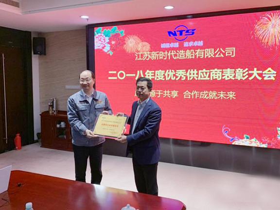 青岛双瑞公司荣膺江苏新时代造船厂“金牌供应商”称号