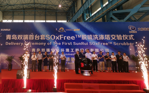 青岛双瑞公司成功举办首台套船舶废气脱硫洗涤塔交验仪式