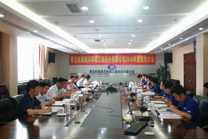 会议主要审议了青岛双瑞公司2016年度董事会工作报告、总经理工作报告、监事会工作报告、财务决算报告、利润分配方案,关于修改公司章程的议案、关于聘请2017年度审计机构的议案等并形成了相关决议。会上,付洪田总经理向参会股东代表、董事、监事汇报了公司2016年度取得的主要成绩以及2017年上半年工作进展情况,特别是船舶压载水管理系统取得USCG型式认可、与第四研究室加强合作等情况。公司在科技创新、市场开拓、管理提升等方面取得的成果,得到了与会人员的充分肯定。股东代表、参会董事和监事对于公司未来良好的发展前景感到振奋和期待,积极为公司发展献计献策。