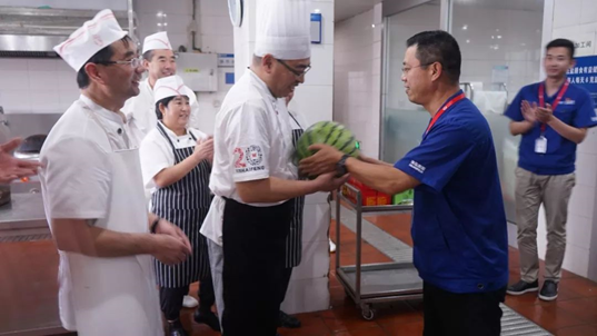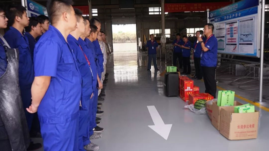 付洪田总经理、刘伟、陈旭立、赵晓锋、董如意四位副总经理一起来到组装、熔炼、加工三个生产中心、物资部仓库、食堂后厨,为一线员工送上西瓜、茶叶、凉茶等消暑慰问品,带去了公司的拳拳关爱之情。各相关部门负责人代表部门接受了公司的慰问品,并发放到部门每一位员工手中。付洪田总经理要求各相关部门要妥善做好工作时间安排,调节高温时段工作强度,实时关注广大员工工作状态和身体状况;强调全体一线员工要学习相关知识,提高防暑意识,如有身体不适及时进行休整,务必将人身健康安全放在首位。