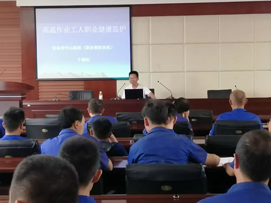 接着,公司组织开展高温作业人员职业健康监护培训,邀请青岛市中心医院体检中心的老师,对各相关部门的工作人员进行专题培训,通过培训,进一步加强高温作业人员的职业健康安全管理,有助于预防和及时救治职业性中暑、热射病等因高温引起的健康问题。