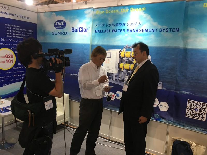 近年来,青岛双瑞公司在日本市场知名度日益提升。此次展会,公司展位吸引了包括日本邮船(NYK)、商船三井(MOL)、洞云海运等大型船东公司以及JMU、名村船厂、大岛船厂、佐世保船厂等知名造船厂的百余位客人前来参观咨询。参展第二天,青岛双瑞公司作为压载水厂家代表,接受了展会举办方的官方采访。尤为可喜的是,在此期间,公司与日本名村船厂、日本佐世保重工签署了5条大型油船压载水管理系统供货项目,并与3家今治船东达成了10余条营运船压载水改造的项目意向。