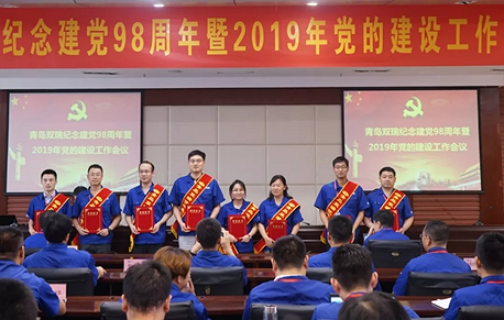 为热烈庆祝中国共产党成立98周年,深化落实七二五所党的建设工作会议精神,青岛双瑞公司隆重召开2019年党的建设工作会议。公司总经理兼党总支书记付洪田传达了七二五所2019年党的建设工作会议精神,并作2019年党建工作报告。大会对2018年度优秀共产党员、优秀党务工作者和工会活动积极分子进行了表彰。